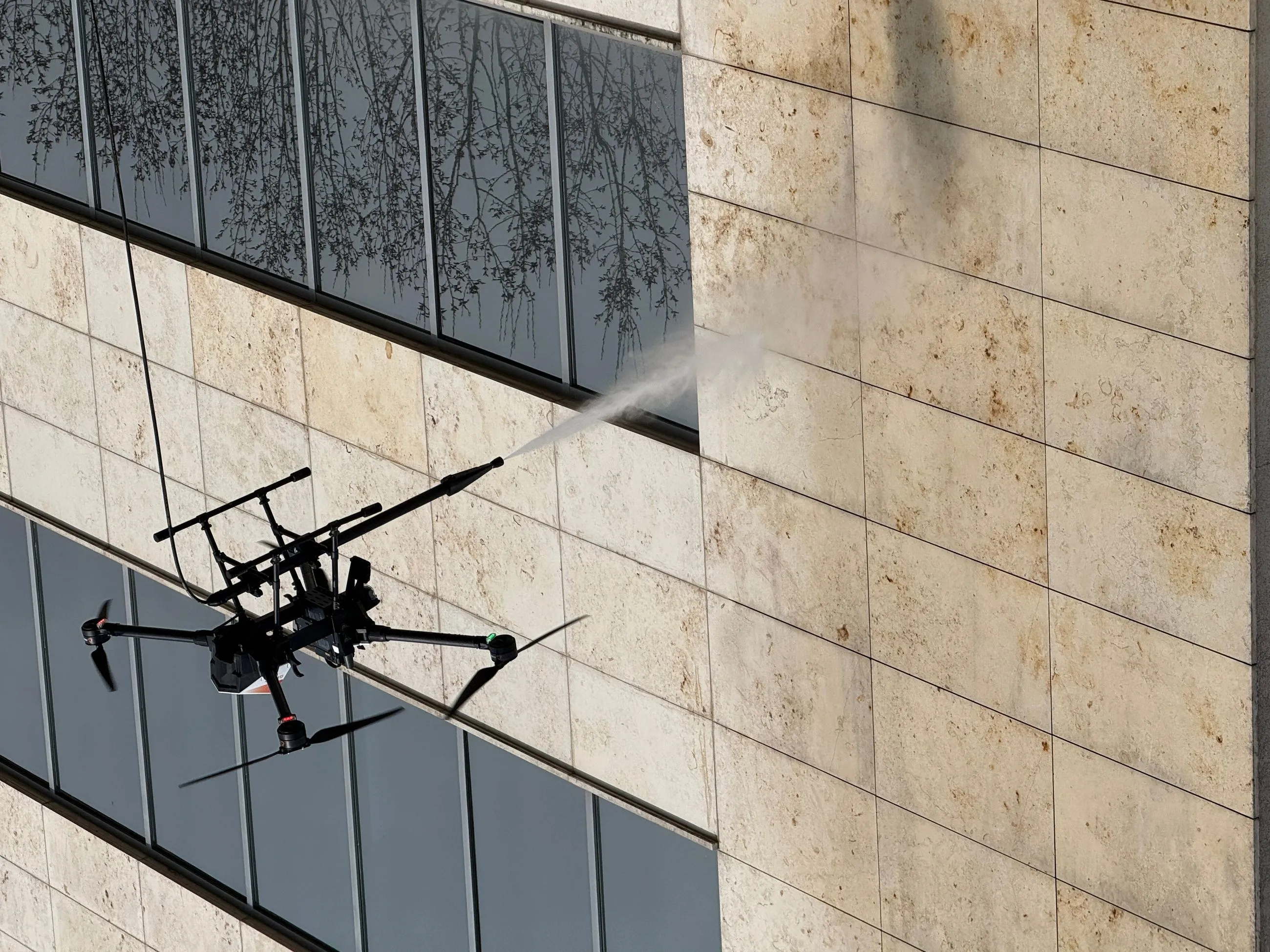 Engineered for efficient and safe operation, these high-pressure cleaning drones are capable of reaching up to 60 meters in height, delivering 15 liters per minute at 200 bar of pressure (2900 PSI). This performance makes them particularly effective for cleaning complex and elevated surfaces such as solar panels, building facades, industrial structures, and other hard-to-access installations.